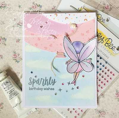 I stamped the little bees holding hands from the same stamp set & heat embossed the honeycomb stamps onto Canson XL Watercolor paper , I then water coloured them using a mix of Wild Honey Distress Ink & Altenew watercolour pans.